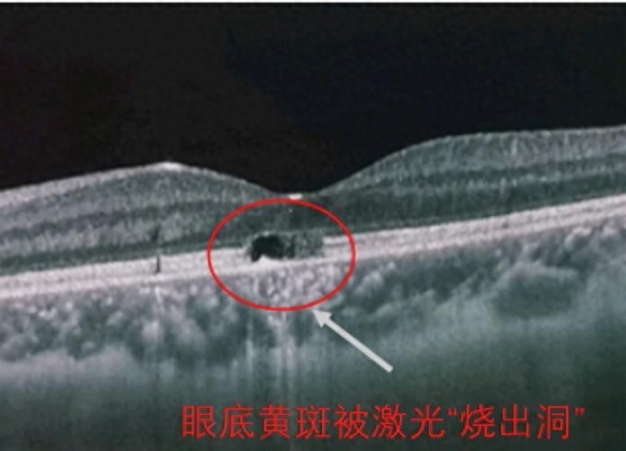 医生询问病史后得知,不久前,兵兵在玩耍时,被同学带来的“逗猫激光笔”直射眼睛。没想到只是短暂地被照射几秒,他的视力就从正常水平骤降至0.2。他的视网膜上负责感光的细胞层已出现中断与缺失。